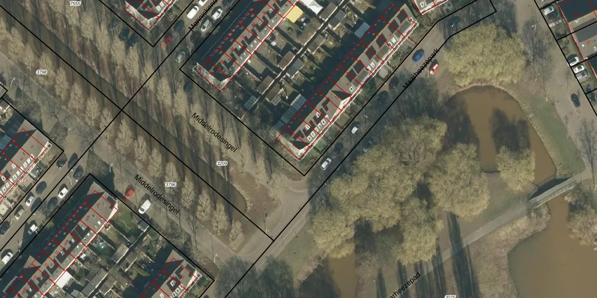 Het perceel waarop Maarheezepark 14 staat heeft een oppervlakte van 5185 m². Dit is een zeer groot perceel. De perceeloppervlakte wordt geregistreerd door het Kadaster. Gedetailleerde informatie over de maten van dit perceel kunt u vinden in het rapport Kadastrale kaart met maatvoering van Maarheezepark 14.
