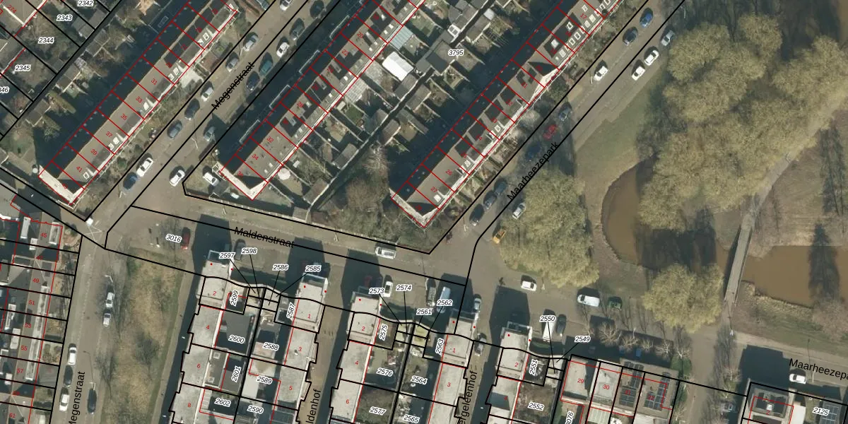 Het perceel waarop Maarheezepark 28 staat heeft een oppervlakte van 5334 m². Dit is een zeer groot perceel. De perceeloppervlakte wordt geregistreerd door het Kadaster. Gedetailleerde informatie over de maten van dit perceel kunt u vinden in het rapport Kadastrale kaart met maatvoering van Maarheezepark 28.