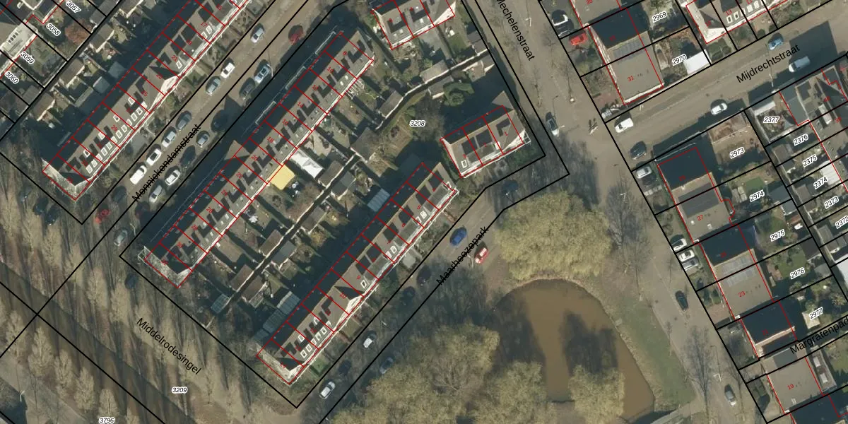 Het perceel waarop Maarheezepark 5 staat heeft een oppervlakte van 5185 m². Dit is een zeer groot perceel. De perceeloppervlakte wordt geregistreerd door het Kadaster. Gedetailleerde informatie over de maten van dit perceel kunt u vinden in het rapport Kadastrale kaart met maatvoering van Maarheezepark 5.