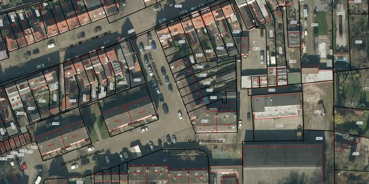 Mac Allisterstraat 22 is gelegen op kadastraal perceel TBG01Q6916. Deze kadastrale aanduiding is uniek en wordt gebruikt door het Kadaster om eigendomsrechten en andere zakelijke rechten vast te leggen. Het perceel maakt onderdeel uit van de kadastrale gemeente Tilburg.