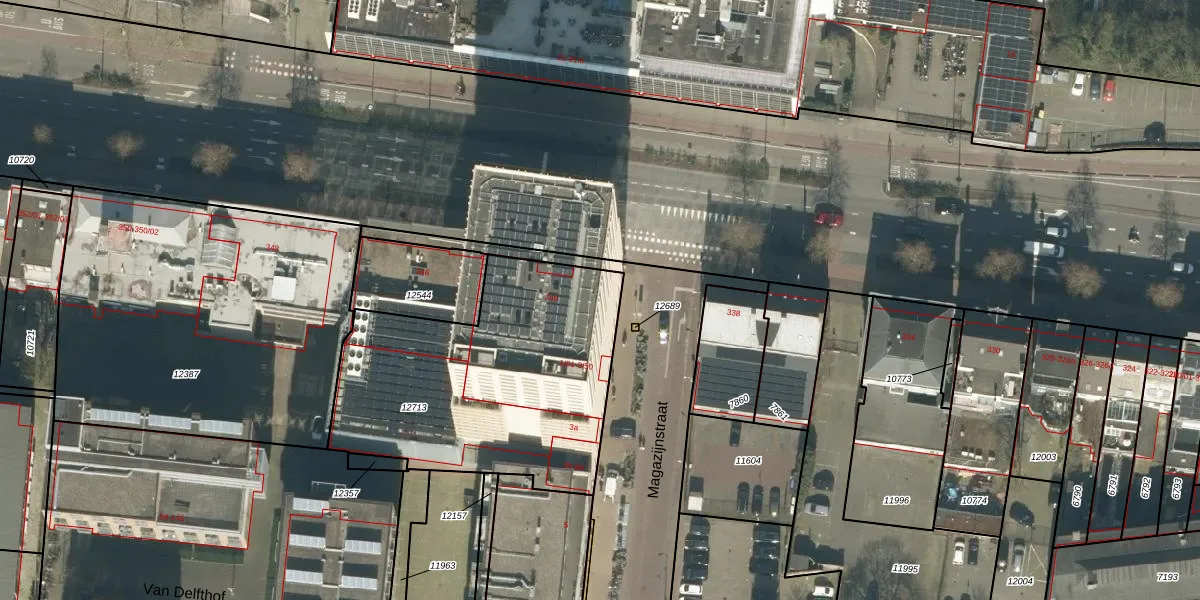 Het perceel waarop Magazijnstraat 1-14 staat heeft een oppervlakte van 1330 m². Dit is een zeer groot perceel. De perceeloppervlakte wordt geregistreerd door het Kadaster. Gedetailleerde informatie over de maten van dit perceel kunt u vinden in het rapport Kadastrale kaart met maatvoering van Magazijnstraat 1-14.