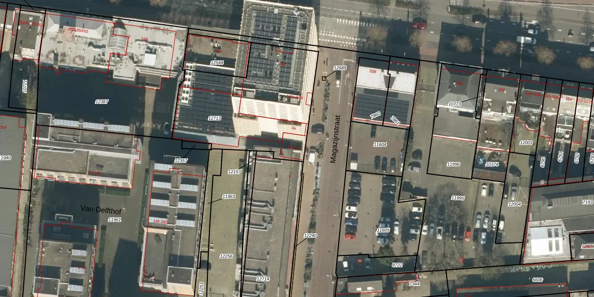 Het perceel waarop Magazijnstraat 3-c staat heeft een oppervlakte van 1330 m². Dit is een zeer groot perceel. De perceeloppervlakte wordt geregistreerd door het Kadaster. Gedetailleerde informatie over de maten van dit perceel kunt u vinden in het rapport Kadastrale kaart met maatvoering van Magazijnstraat 3-c.