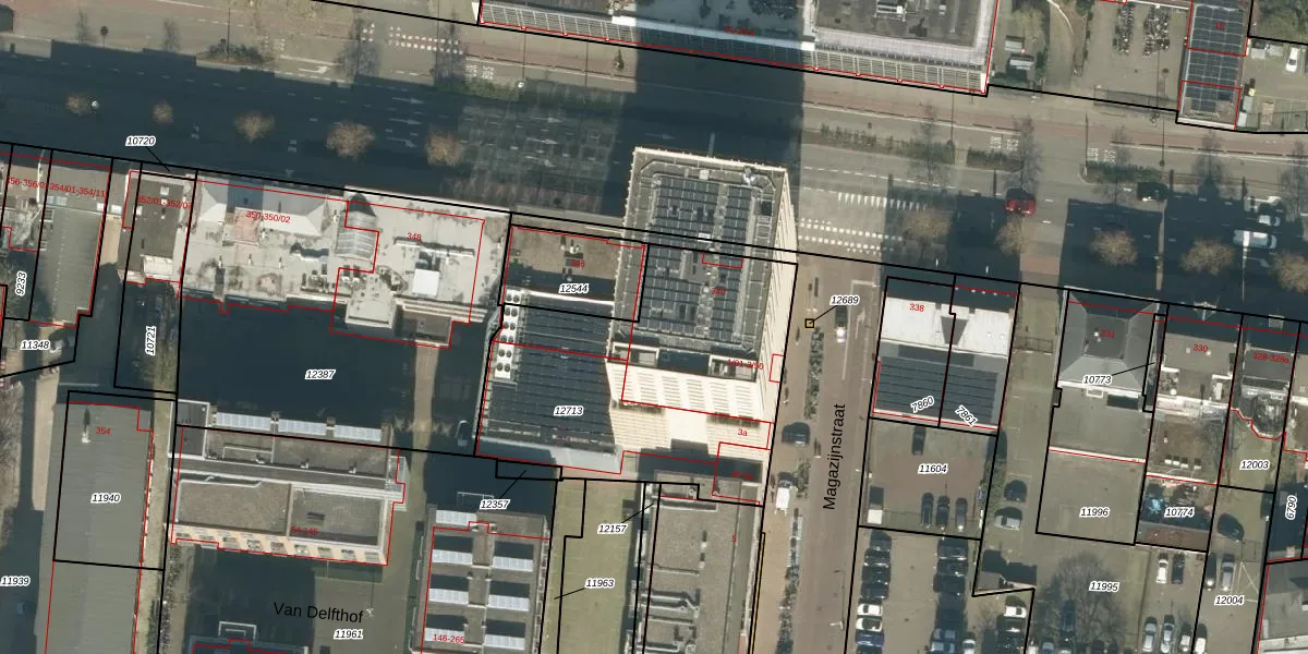 Magazijnstraat 3-47 is gelegen op kadastraal perceel TBG01M12713. Deze kadastrale aanduiding is uniek en wordt gebruikt door het Kadaster om eigendomsrechten en andere zakelijke rechten vast te leggen. Het perceel maakt onderdeel uit van de kadastrale gemeente Tilburg.