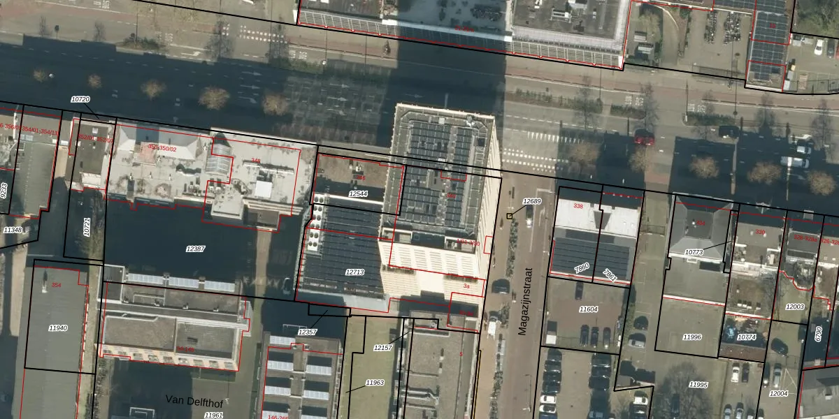 Magazijnstraat 3-41 is gelegen op kadastraal perceel TBG01M12713. Deze kadastrale aanduiding is uniek en wordt gebruikt door het Kadaster om eigendomsrechten en andere zakelijke rechten vast te leggen. Het perceel maakt onderdeel uit van de kadastrale gemeente Tilburg.