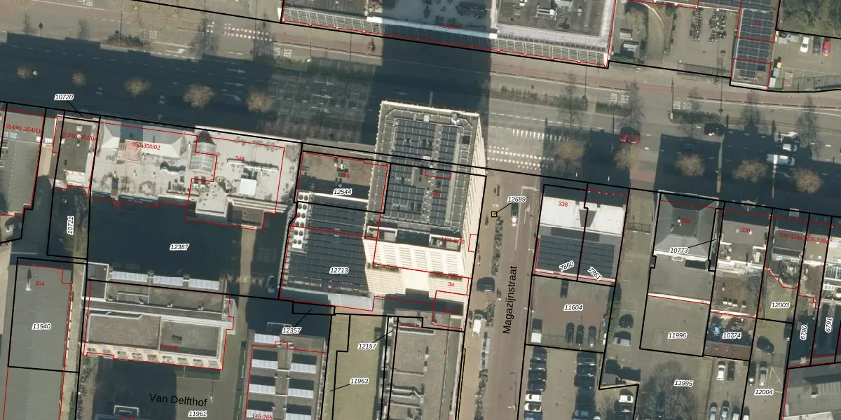 Magazijnstraat 3-25 is gelegen op kadastraal perceel TBG01M12713. Deze kadastrale aanduiding is uniek en wordt gebruikt door het Kadaster om eigendomsrechten en andere zakelijke rechten vast te leggen. Het perceel maakt onderdeel uit van de kadastrale gemeente Tilburg.