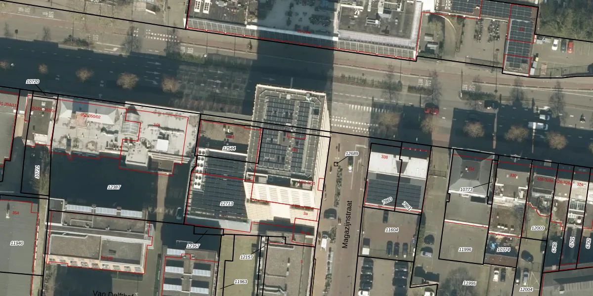 Het perceel waarop Magazijnstraat 3-12 staat heeft een oppervlakte van 1330 m². Dit is een zeer groot perceel. De perceeloppervlakte wordt geregistreerd door het Kadaster. Gedetailleerde informatie over de maten van dit perceel kunt u vinden in het rapport Kadastrale kaart met maatvoering van Magazijnstraat 3-12.