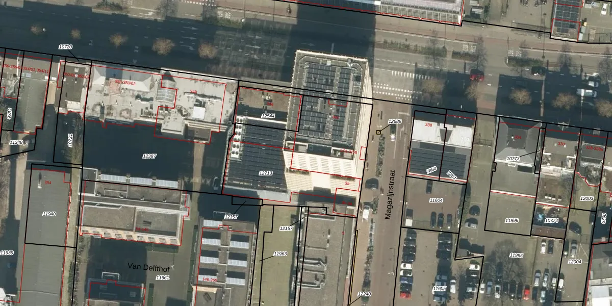 Het perceel waarop Magazijnstraat 3-43 staat heeft een oppervlakte van 1330 m². Dit is een zeer groot perceel. De perceeloppervlakte wordt geregistreerd door het Kadaster. Gedetailleerde informatie over de maten van dit perceel kunt u vinden in het rapport Kadastrale kaart met maatvoering van Magazijnstraat 3-43.