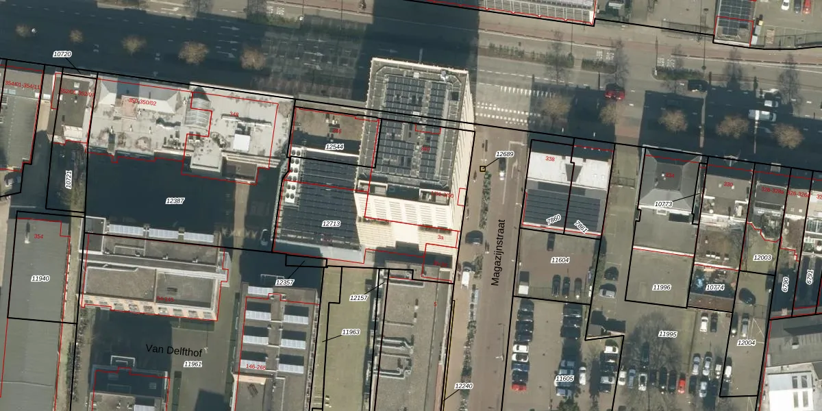 Magazijnstraat 3-19 is gelegen op kadastraal perceel TBG01M12713. Deze kadastrale aanduiding is uniek en wordt gebruikt door het Kadaster om eigendomsrechten en andere zakelijke rechten vast te leggen. Het perceel maakt onderdeel uit van de kadastrale gemeente Tilburg.