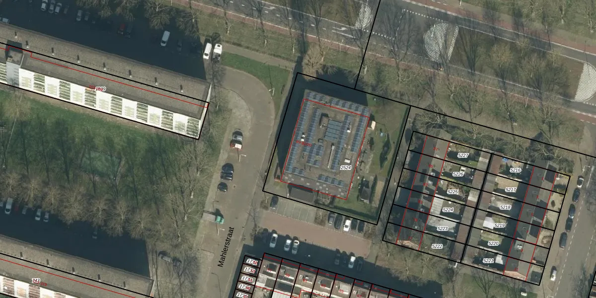 Het perceel waarop Mahlerstraat 91-04 staat heeft een oppervlakte van 1654 m². Dit is een zeer groot perceel. De perceeloppervlakte wordt geregistreerd door het Kadaster. Gedetailleerde informatie over de maten van dit perceel kunt u vinden in het rapport Kadastrale kaart met maatvoering van Mahlerstraat 91-04.