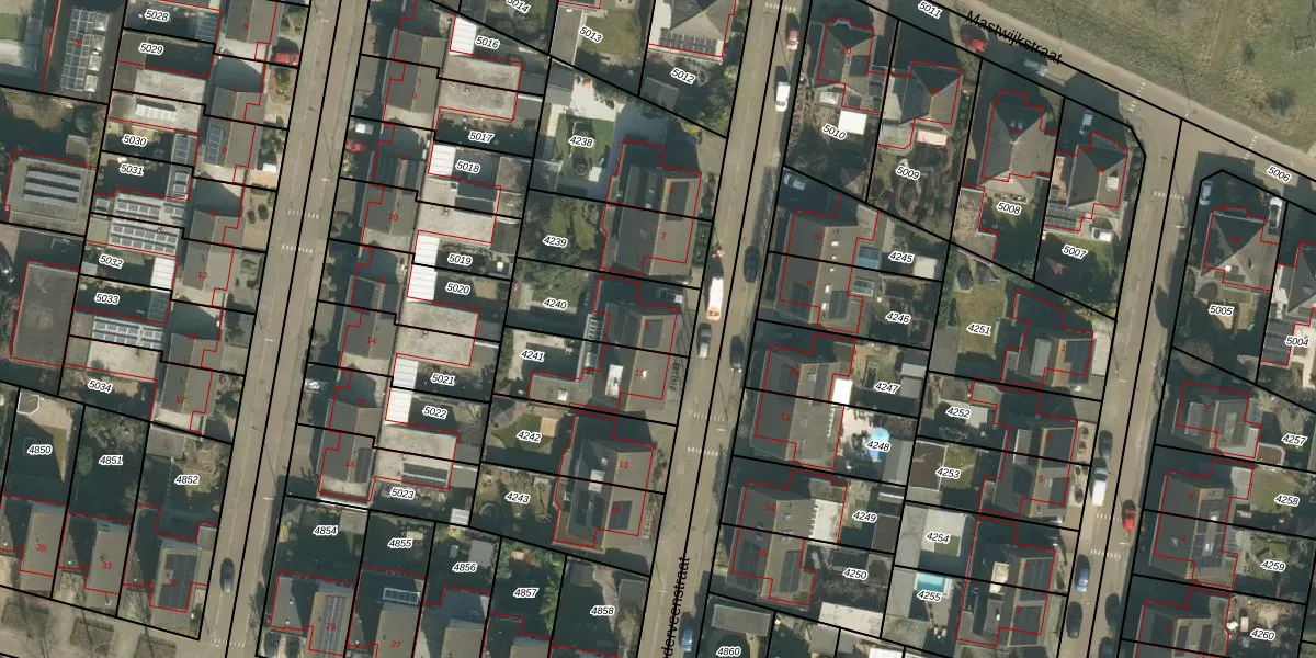 Manderveenstraat 9 is gelegen op kadastraal perceel TBG01AG4240. Deze kadastrale aanduiding is uniek en wordt gebruikt door het Kadaster om eigendomsrechten en andere zakelijke rechten vast te leggen. Het perceel maakt onderdeel uit van de kadastrale gemeente Tilburg.