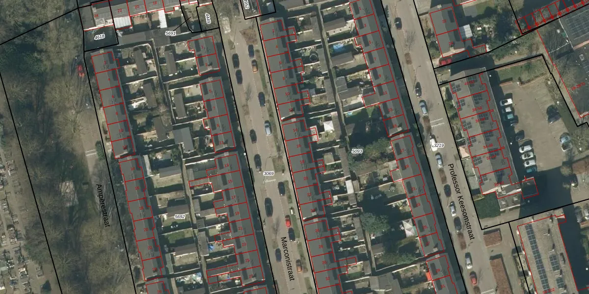 Het perceel waarop Marconistraat 16 staat heeft een oppervlakte van 8250 m². Dit is een zeer groot perceel. De perceeloppervlakte wordt geregistreerd door het Kadaster. Gedetailleerde informatie over de maten van dit perceel kunt u vinden in het rapport Kadastrale kaart met maatvoering van Marconistraat 16.