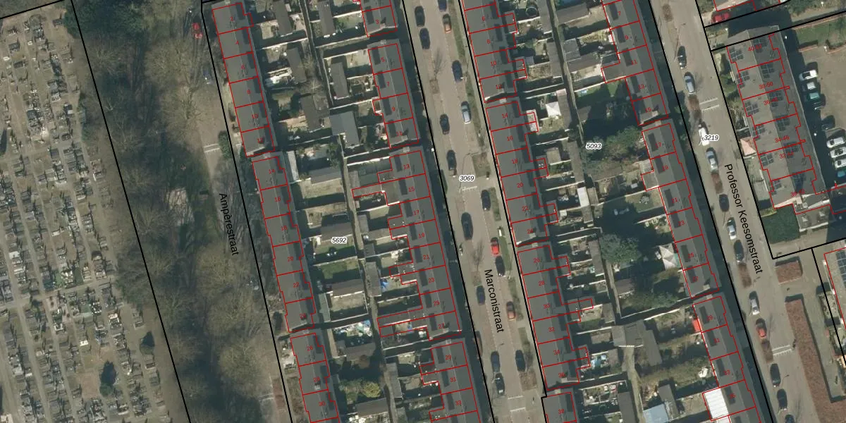Het perceel waarop Marconistraat 17 staat heeft een oppervlakte van 7612 m². Dit is een zeer groot perceel. De perceeloppervlakte wordt geregistreerd door het Kadaster. Gedetailleerde informatie over de maten van dit perceel kunt u vinden in het rapport Kadastrale kaart met maatvoering van Marconistraat 17.