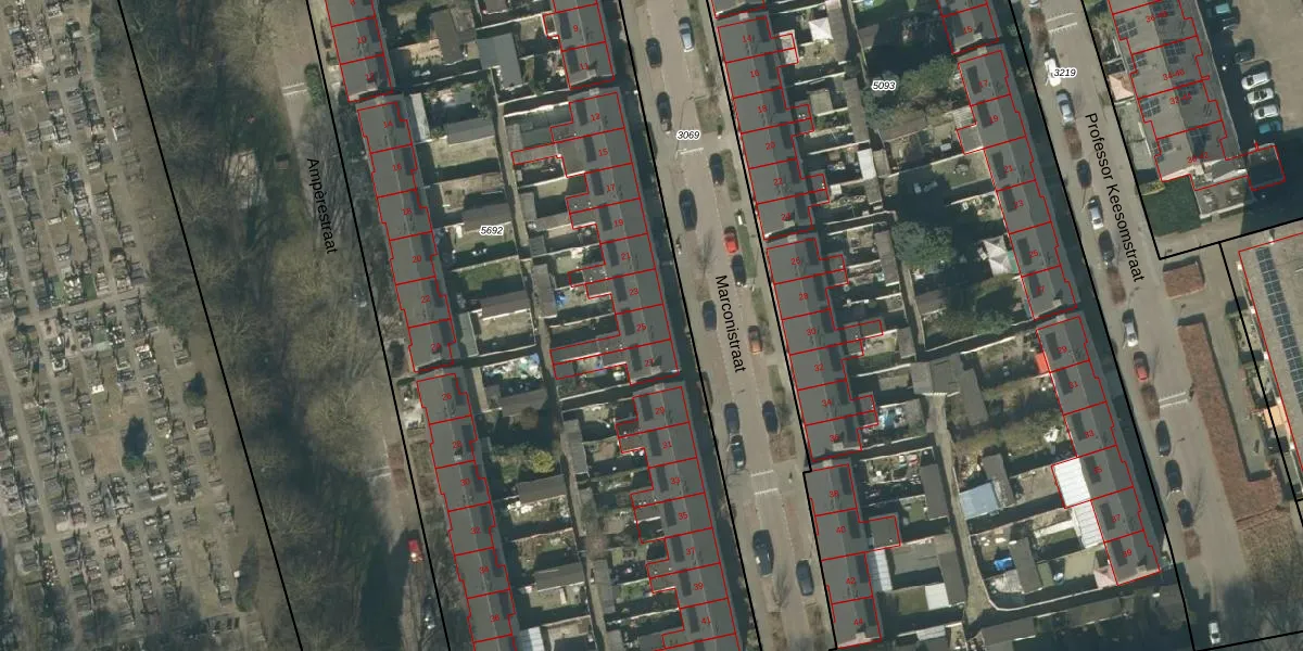 Het perceel waarop Marconistraat 25 staat heeft een oppervlakte van 7612 m². Dit is een zeer groot perceel. De perceeloppervlakte wordt geregistreerd door het Kadaster. Gedetailleerde informatie over de maten van dit perceel kunt u vinden in het rapport Kadastrale kaart met maatvoering van Marconistraat 25.