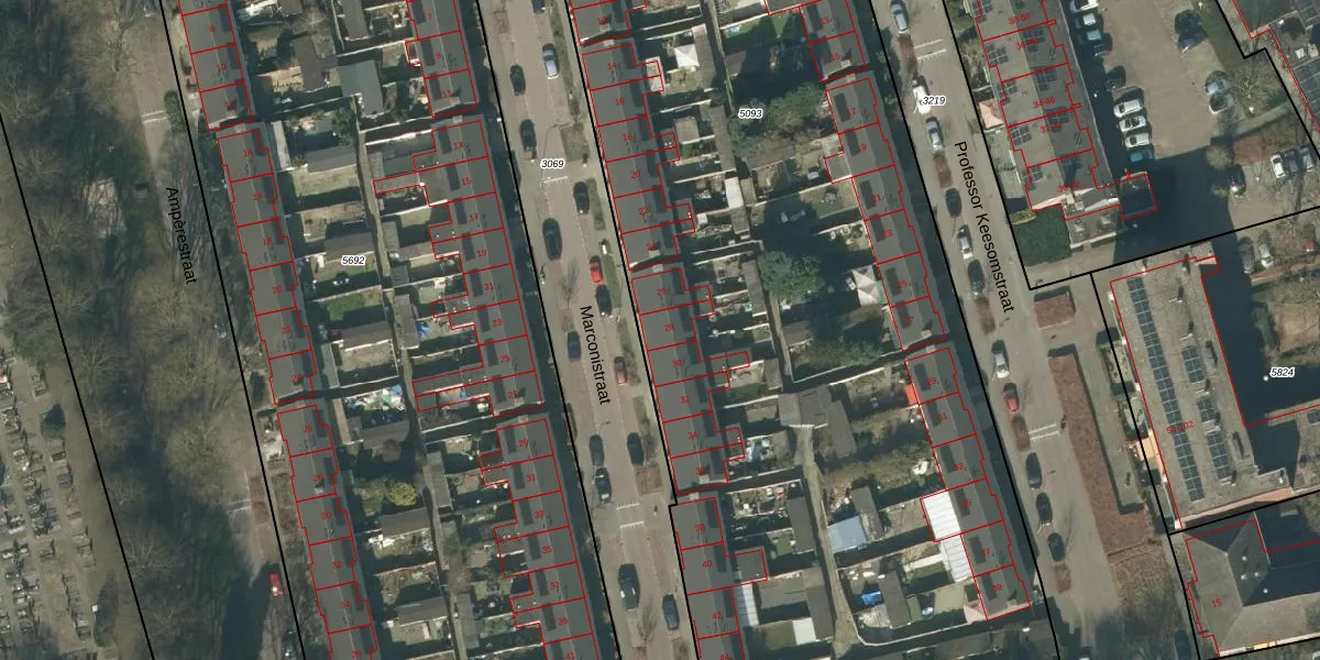 Het perceel waarop Marconistraat 28 staat heeft een oppervlakte van 8250 m². Dit is een zeer groot perceel. De perceeloppervlakte wordt geregistreerd door het Kadaster. Gedetailleerde informatie over de maten van dit perceel kunt u vinden in het rapport Kadastrale kaart met maatvoering van Marconistraat 28.