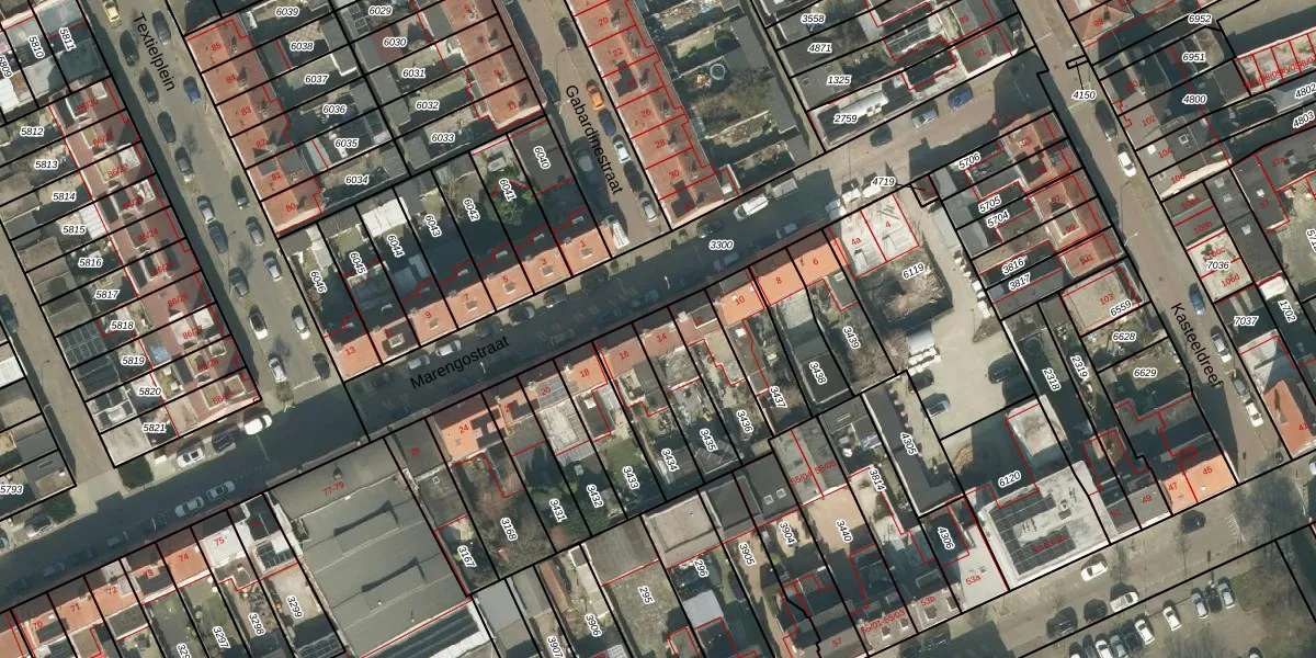 Marengostraat 14 is gelegen op kadastraal perceel TBG01O3435. Deze kadastrale aanduiding is uniek en wordt gebruikt door het Kadaster om eigendomsrechten en andere zakelijke rechten vast te leggen. Het perceel maakt onderdeel uit van de kadastrale gemeente Tilburg.
