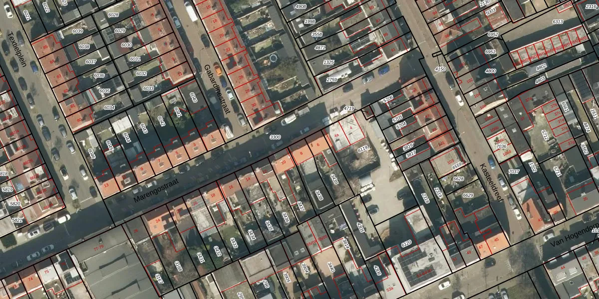 Het perceel waarop Marengostraat 8 staat heeft een oppervlakte van 162 m². Dit is een middelgroot perceel. De perceeloppervlakte wordt geregistreerd door het Kadaster. Gedetailleerde informatie over de maten van dit perceel kunt u vinden in het rapport Kadastrale kaart met maatvoering van Marengostraat 8.