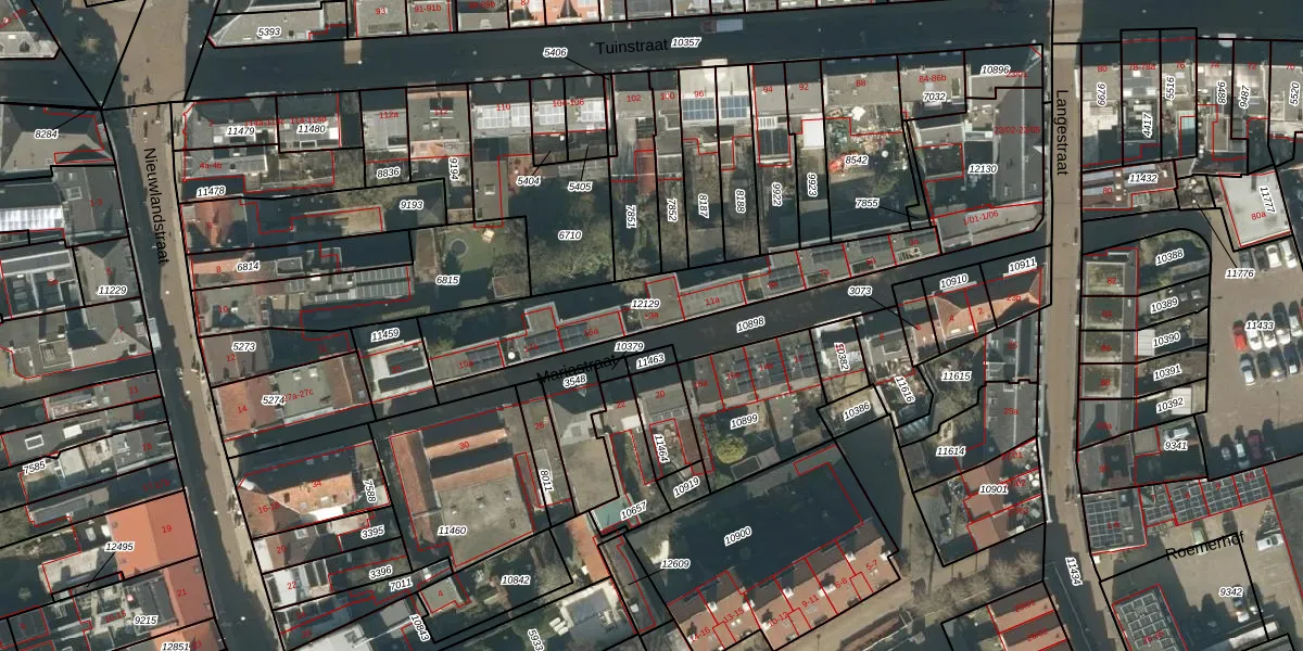 Het perceel waarop Mariastraat 13-a staat heeft een oppervlakte van 647 m². Dit is een groot perceel. De perceeloppervlakte wordt geregistreerd door het Kadaster. Gedetailleerde informatie over de maten van dit perceel kunt u vinden in het rapport Kadastrale kaart met maatvoering van Mariastraat 13-a.