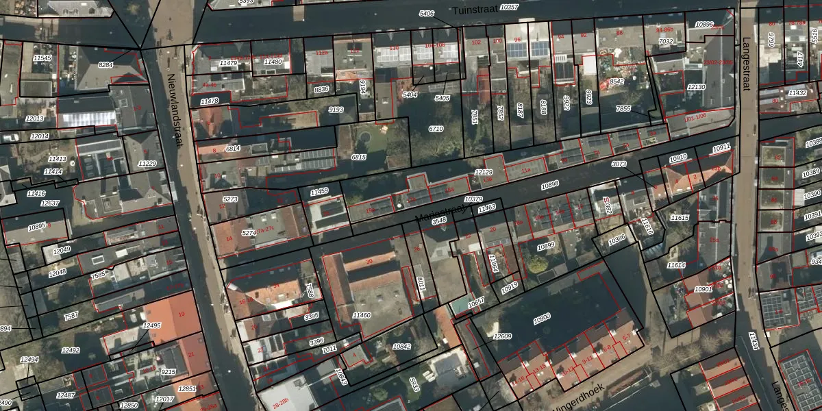 Het perceel waarop Mariastraat 17-a staat heeft een oppervlakte van 647 m². Dit is een groot perceel. De perceeloppervlakte wordt geregistreerd door het Kadaster. Gedetailleerde informatie over de maten van dit perceel kunt u vinden in het rapport Kadastrale kaart met maatvoering van Mariastraat 17-a.