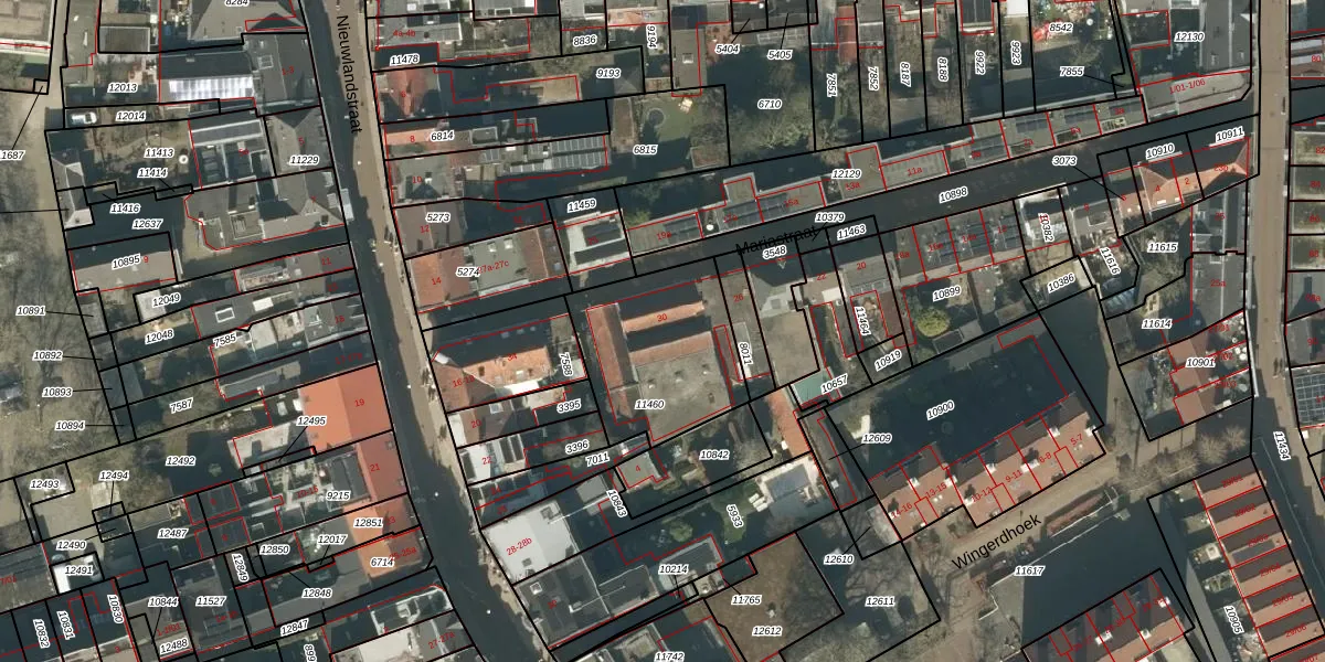 Het perceel waarop Mariastraat 30 staat heeft een oppervlakte van 553 m². Dit is een groot perceel. De perceeloppervlakte wordt geregistreerd door het Kadaster. Gedetailleerde informatie over de maten van dit perceel kunt u vinden in het rapport Kadastrale kaart met maatvoering van Mariastraat 30.