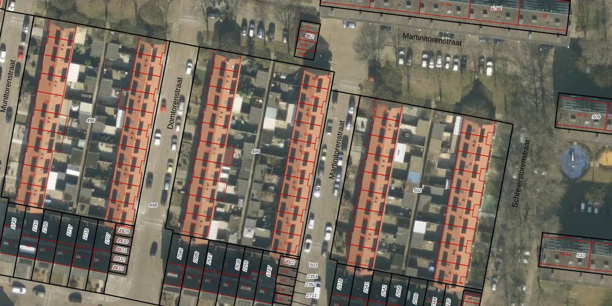 Het perceel waarop Martinitorenstraat 115 staat heeft een oppervlakte van 2756 m². Dit is een zeer groot perceel. De perceeloppervlakte wordt geregistreerd door het Kadaster. Gedetailleerde informatie over de maten van dit perceel kunt u vinden in het rapport Kadastrale kaart met maatvoering van Martinitorenstraat 115.