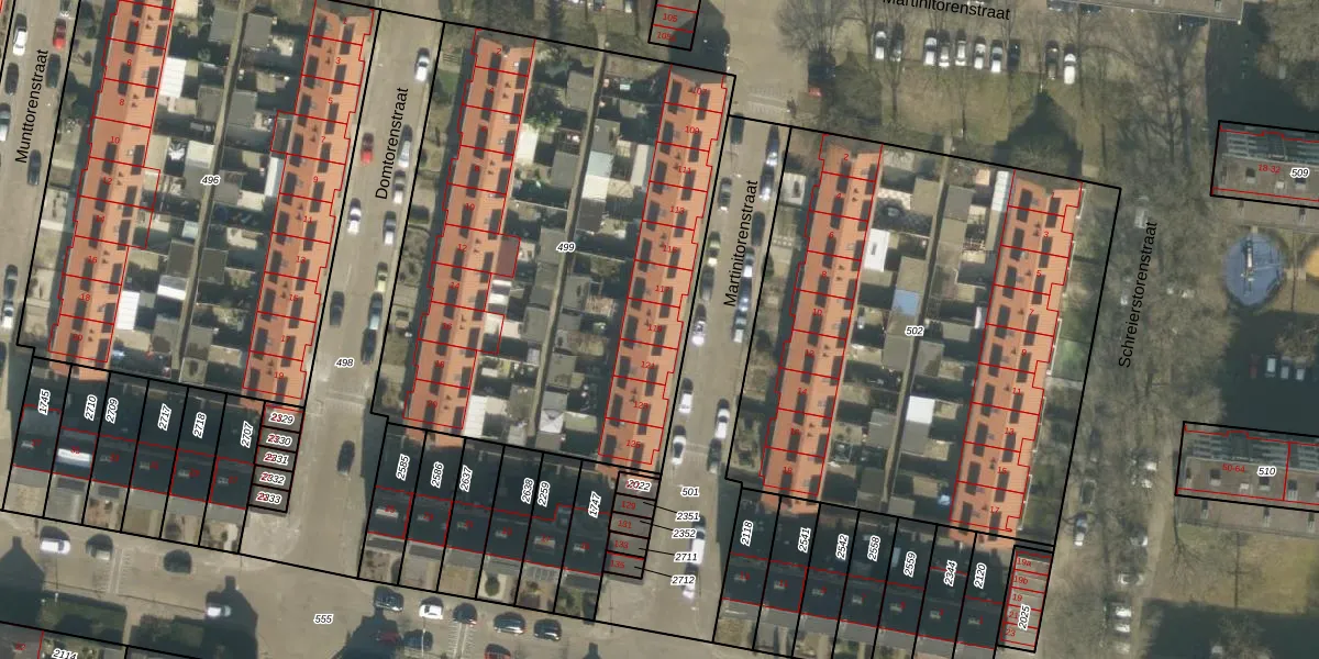 Het perceel waarop Martinitorenstraat 119 staat heeft een oppervlakte van 2756 m². Dit is een zeer groot perceel. De perceeloppervlakte wordt geregistreerd door het Kadaster. Gedetailleerde informatie over de maten van dit perceel kunt u vinden in het rapport Kadastrale kaart met maatvoering van Martinitorenstraat 119.