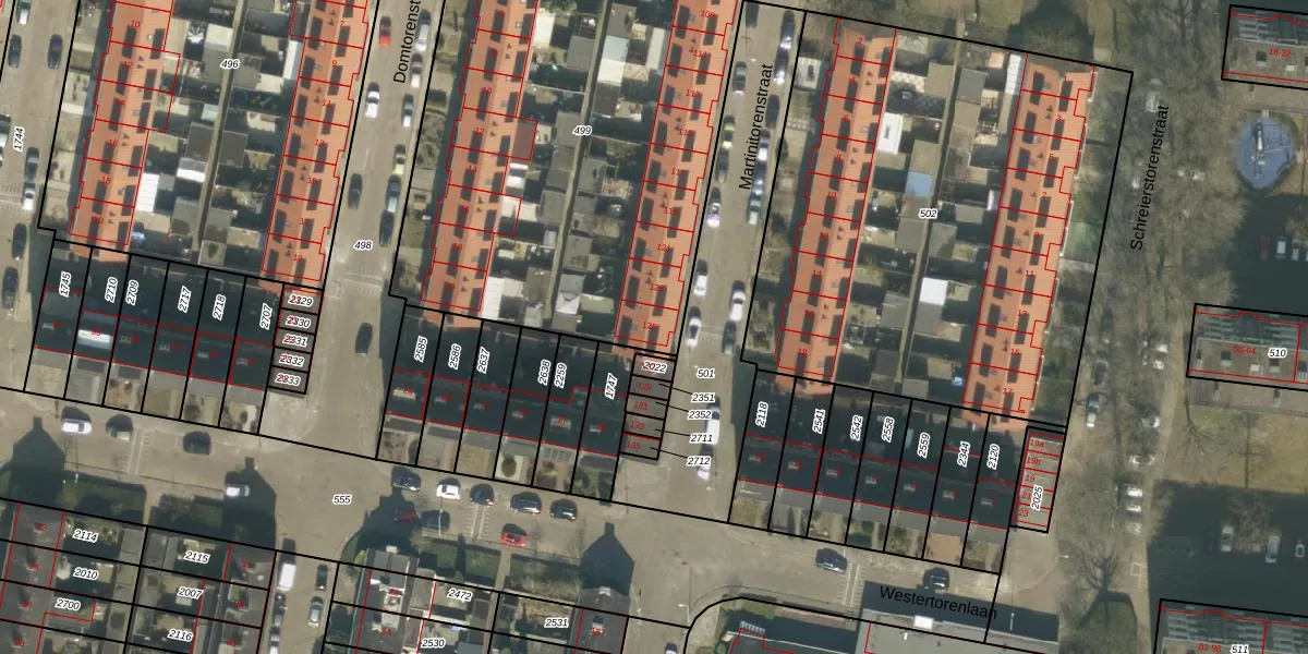 Het perceel waarop Martinitorenstraat 125 staat heeft een oppervlakte van 2756 m². Dit is een zeer groot perceel. De perceeloppervlakte wordt geregistreerd door het Kadaster. Gedetailleerde informatie over de maten van dit perceel kunt u vinden in het rapport Kadastrale kaart met maatvoering van Martinitorenstraat 125.
