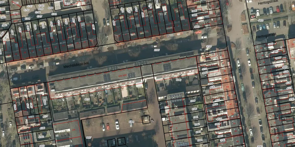 Mechtildisstraat 2-20 is gelegen op kadastraal perceel TBG01R6693. Deze kadastrale aanduiding is uniek en wordt gebruikt door het Kadaster om eigendomsrechten en andere zakelijke rechten vast te leggen. Het perceel maakt onderdeel uit van de kadastrale gemeente Tilburg.