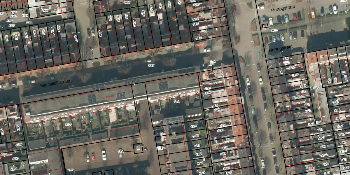Mechtildisstraat 2-18 is gelegen op kadastraal perceel TBG01R6080. Deze kadastrale aanduiding is uniek en wordt gebruikt door het Kadaster om eigendomsrechten en andere zakelijke rechten vast te leggen. Het perceel maakt onderdeel uit van de kadastrale gemeente Tilburg.
