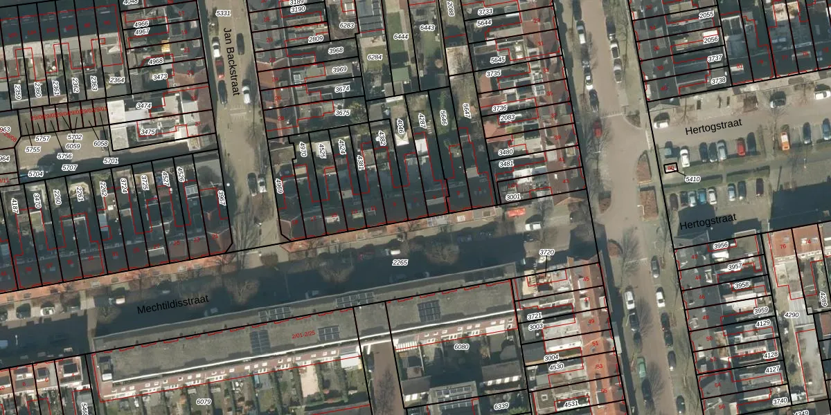 Mechtildisstraat 7 is gelegen op kadastraal perceel TBG01R4046. Deze kadastrale aanduiding is uniek en wordt gebruikt door het Kadaster om eigendomsrechten en andere zakelijke rechten vast te leggen. Het perceel maakt onderdeel uit van de kadastrale gemeente Tilburg.