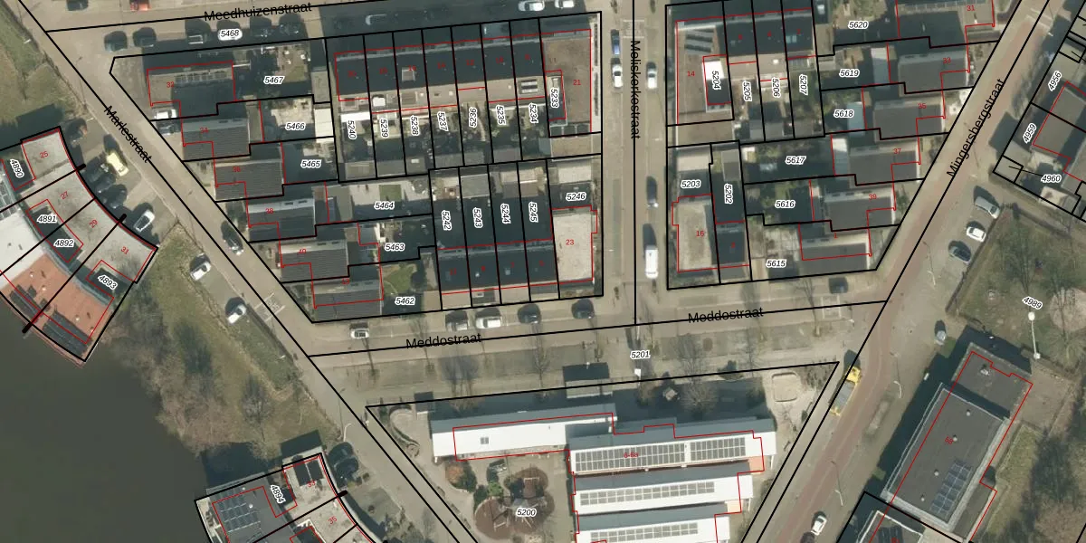 Meddostraat 5 is gelegen op kadastraal perceel TBG01AG5245. Deze kadastrale aanduiding is uniek en wordt gebruikt door het Kadaster om eigendomsrechten en andere zakelijke rechten vast te leggen. Het perceel maakt onderdeel uit van de kadastrale gemeente Tilburg.