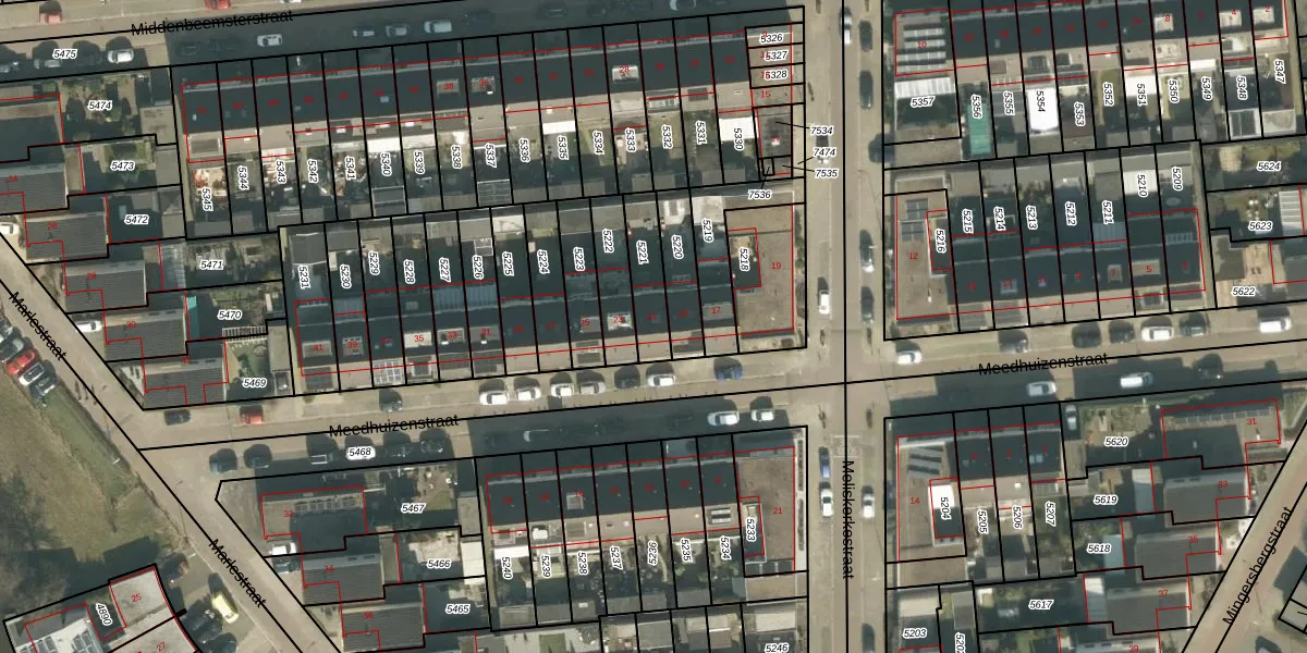 Meedhuizenstraat 21 is gelegen op kadastraal perceel TBG01AG5221. Deze kadastrale aanduiding is uniek en wordt gebruikt door het Kadaster om eigendomsrechten en andere zakelijke rechten vast te leggen. Het perceel maakt onderdeel uit van de kadastrale gemeente Tilburg.