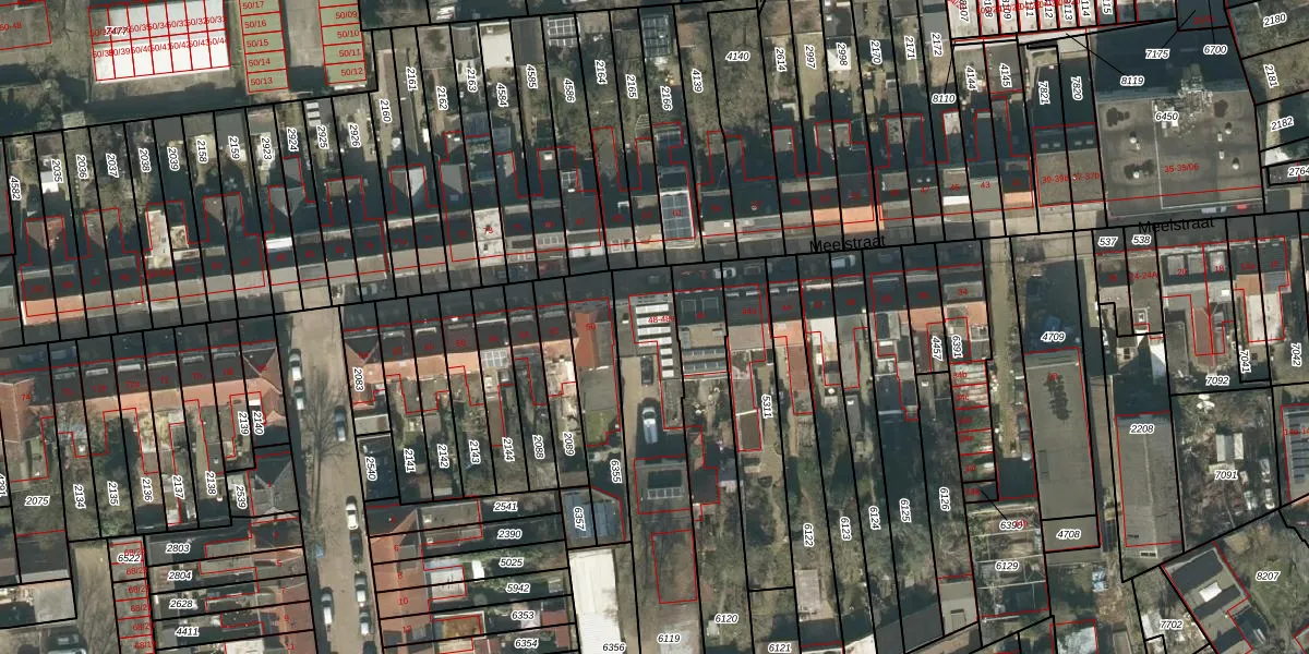 Het perceel waarop Meelstraat 48-a staat heeft een oppervlakte van 721 m². Dit is een groot perceel. De perceeloppervlakte wordt geregistreerd door het Kadaster. Gedetailleerde informatie over de maten van dit perceel kunt u vinden in het rapport Kadastrale kaart met maatvoering van Meelstraat 48-a.