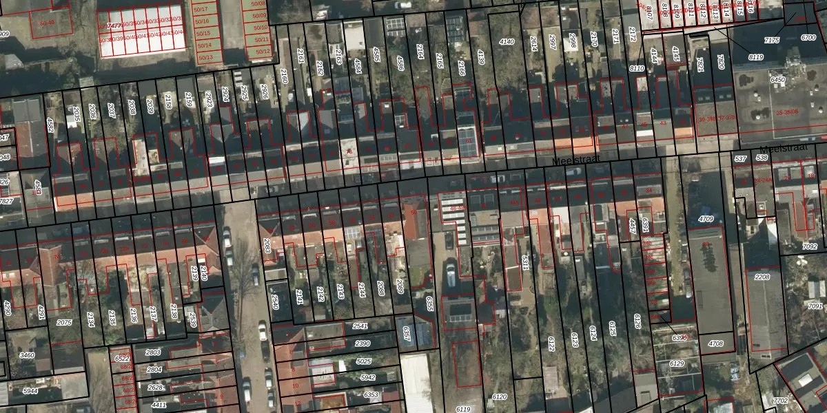 Meelstraat 50 is gelegen op kadastraal perceel TBG01Q6355. Deze kadastrale aanduiding is uniek en wordt gebruikt door het Kadaster om eigendomsrechten en andere zakelijke rechten vast te leggen. Het perceel maakt onderdeel uit van de kadastrale gemeente Tilburg.