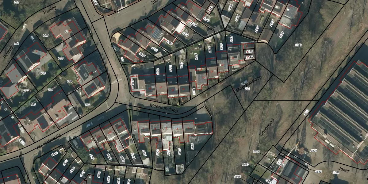 Meerkensloop 15 is gelegen op kadastraal perceel TBG01AB1321. Deze kadastrale aanduiding is uniek en wordt gebruikt door het Kadaster om eigendomsrechten en andere zakelijke rechten vast te leggen. Het perceel maakt onderdeel uit van de kadastrale gemeente Tilburg.