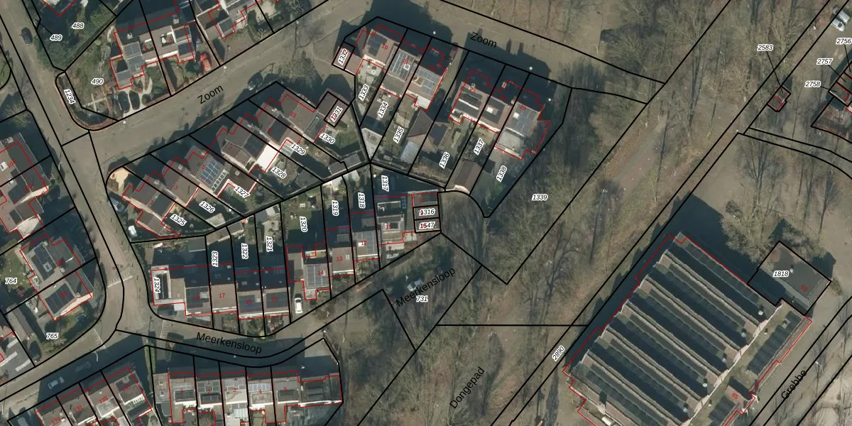 Meerkensloop 9 is gelegen op kadastraal perceel TBG01AB1316. Deze kadastrale aanduiding is uniek en wordt gebruikt door het Kadaster om eigendomsrechten en andere zakelijke rechten vast te leggen. Het perceel maakt onderdeel uit van de kadastrale gemeente Tilburg.