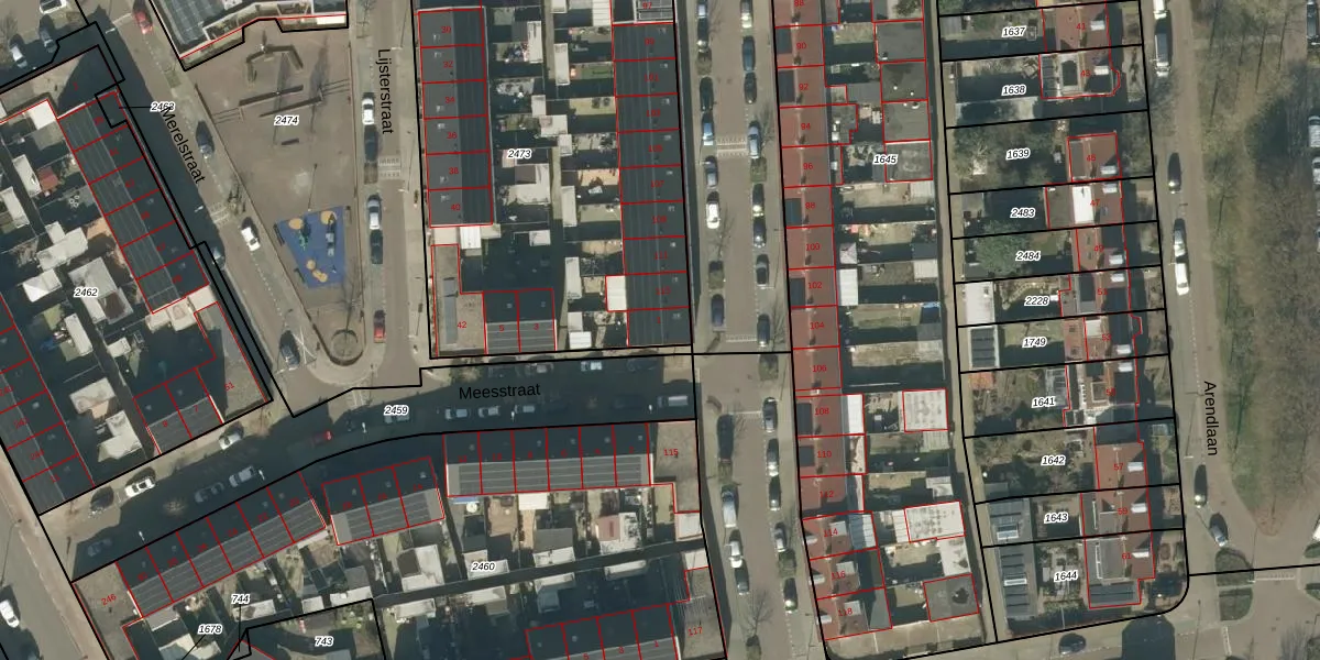 Het perceel waarop Meesstraat 1 staat heeft een oppervlakte van 2370 m². Dit is een zeer groot perceel. De perceeloppervlakte wordt geregistreerd door het Kadaster. Gedetailleerde informatie over de maten van dit perceel kunt u vinden in het rapport Kadastrale kaart met maatvoering van Meesstraat 1.