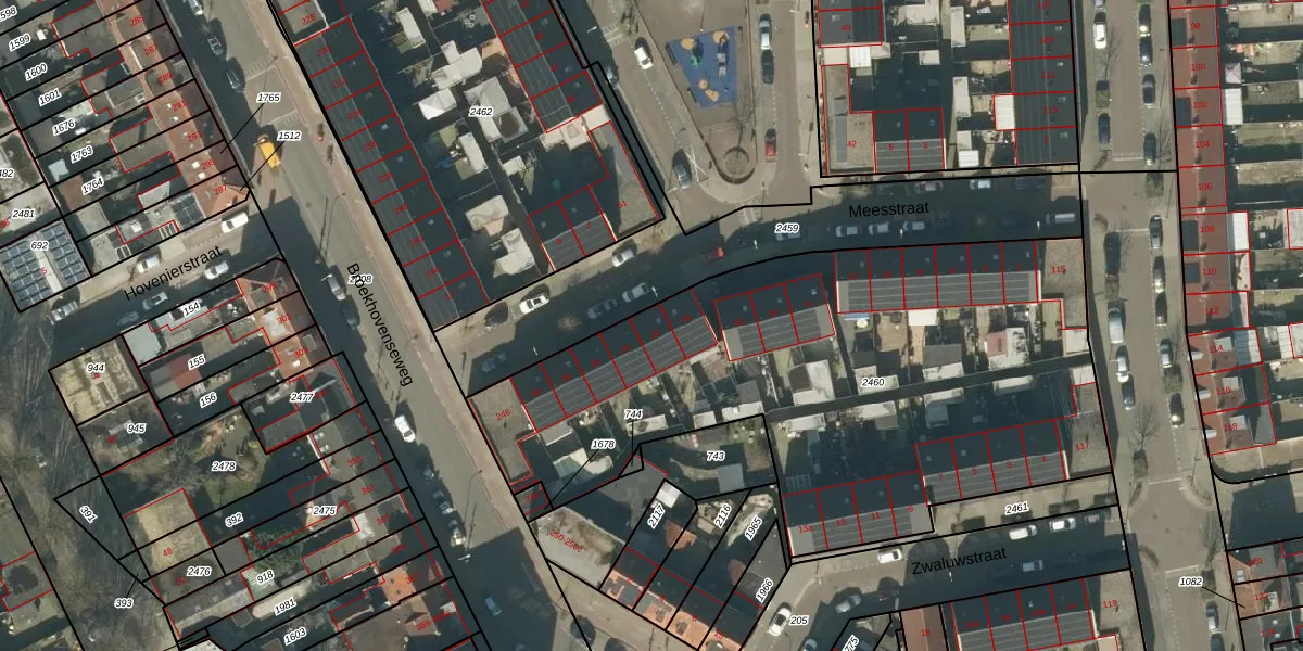 Het perceel waarop Meesstraat 22 staat heeft een oppervlakte van 2990 m². Dit is een zeer groot perceel. De perceeloppervlakte wordt geregistreerd door het Kadaster. Gedetailleerde informatie over de maten van dit perceel kunt u vinden in het rapport Kadastrale kaart met maatvoering van Meesstraat 22.