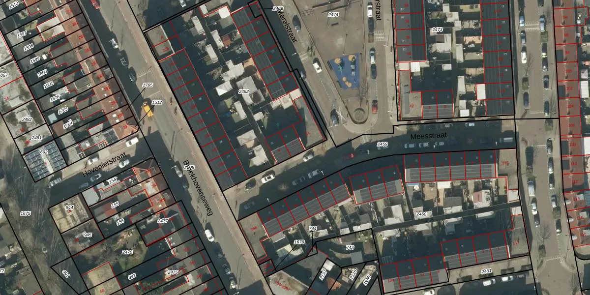 Het perceel waarop Meesstraat 7 staat heeft een oppervlakte van 2320 m². Dit is een zeer groot perceel. De perceeloppervlakte wordt geregistreerd door het Kadaster. Gedetailleerde informatie over de maten van dit perceel kunt u vinden in het rapport Kadastrale kaart met maatvoering van Meesstraat 7.