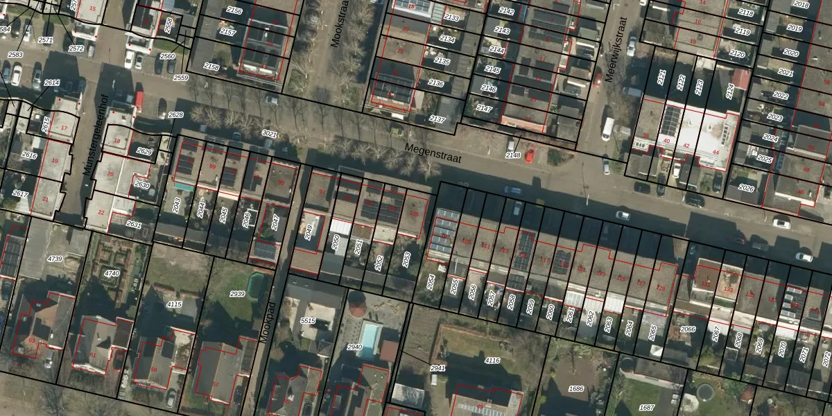 Het perceel waarop Megenstraat 105 staat heeft een oppervlakte van 195 m². Dit is een middelgroot perceel. De perceeloppervlakte wordt geregistreerd door het Kadaster. Gedetailleerde informatie over de maten van dit perceel kunt u vinden in het rapport Kadastrale kaart met maatvoering van Megenstraat 105.