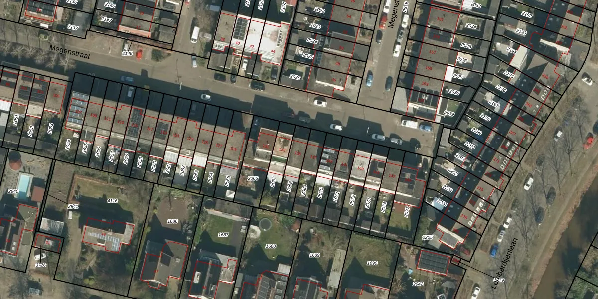 Het perceel waarop Megenstraat 135 staat heeft een oppervlakte van 162 m². Dit is een middelgroot perceel. De perceeloppervlakte wordt geregistreerd door het Kadaster. Gedetailleerde informatie over de maten van dit perceel kunt u vinden in het rapport Kadastrale kaart met maatvoering van Megenstraat 135.