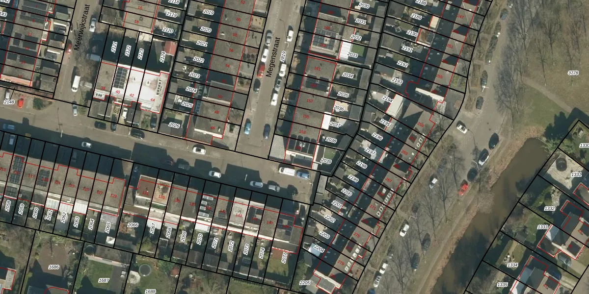 Het perceel waarop Megenstraat 151 staat heeft een oppervlakte van 215 m². Dit is een middelgroot perceel. De perceeloppervlakte wordt geregistreerd door het Kadaster. Gedetailleerde informatie over de maten van dit perceel kunt u vinden in het rapport Kadastrale kaart met maatvoering van Megenstraat 151.