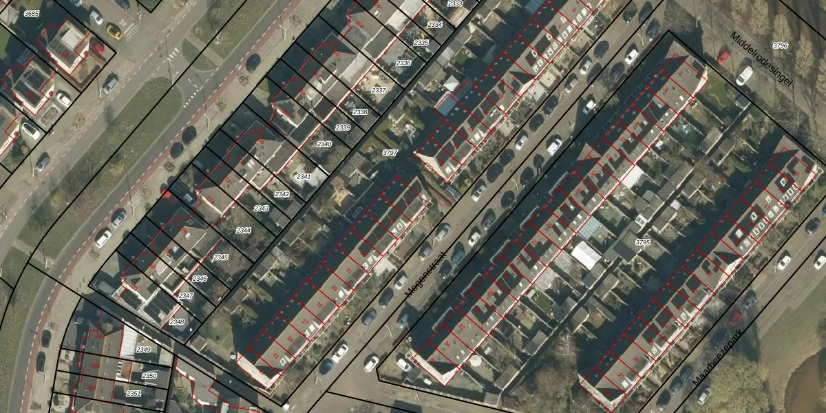 Megenstraat 23 is gelegen op kadastraal perceel TBG01AG3797. Deze kadastrale aanduiding is uniek en wordt gebruikt door het Kadaster om eigendomsrechten en andere zakelijke rechten vast te leggen. Het perceel maakt onderdeel uit van de kadastrale gemeente Tilburg.