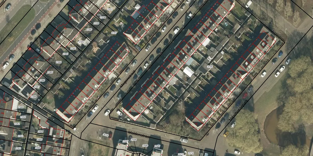 Het perceel waarop Megenstraat 26 staat heeft een oppervlakte van 5334 m². Dit is een zeer groot perceel. De perceeloppervlakte wordt geregistreerd door het Kadaster. Gedetailleerde informatie over de maten van dit perceel kunt u vinden in het rapport Kadastrale kaart met maatvoering van Megenstraat 26.