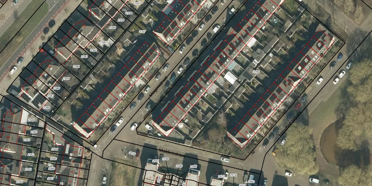 Het perceel waarop Megenstraat 28 staat heeft een oppervlakte van 5334 m². Dit is een zeer groot perceel. De perceeloppervlakte wordt geregistreerd door het Kadaster. Gedetailleerde informatie over de maten van dit perceel kunt u vinden in het rapport Kadastrale kaart met maatvoering van Megenstraat 28.