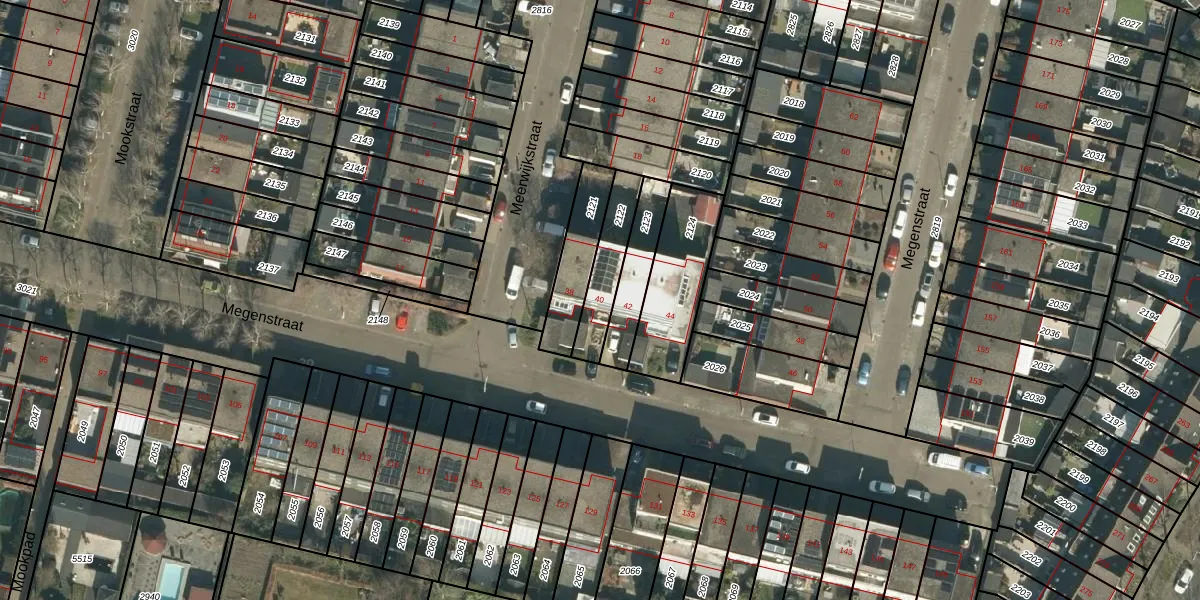 Het perceel waarop Megenstraat 40 staat heeft een oppervlakte van 155 m². Dit is een middelgroot perceel. De perceeloppervlakte wordt geregistreerd door het Kadaster. Gedetailleerde informatie over de maten van dit perceel kunt u vinden in het rapport Kadastrale kaart met maatvoering van Megenstraat 40.