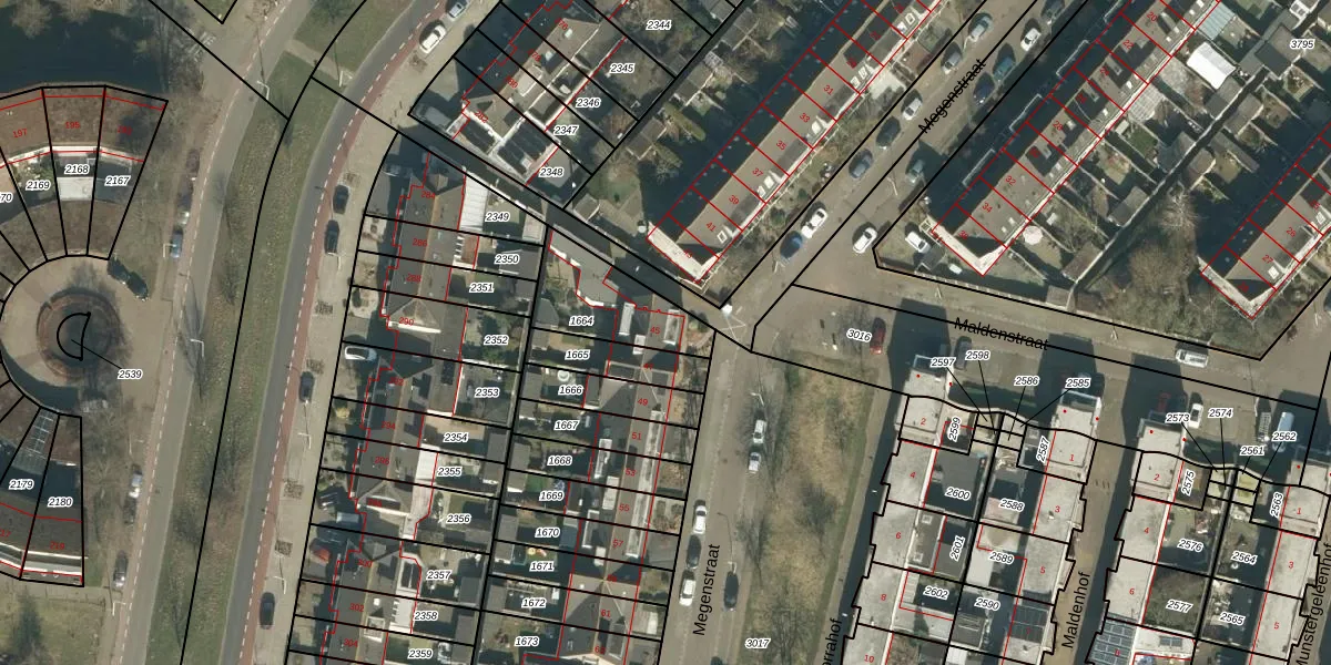 Het perceel waarop Megenstraat 45 staat heeft een oppervlakte van 275 m². Dit is een middelgroot perceel. De perceeloppervlakte wordt geregistreerd door het Kadaster. Gedetailleerde informatie over de maten van dit perceel kunt u vinden in het rapport Kadastrale kaart met maatvoering van Megenstraat 45.