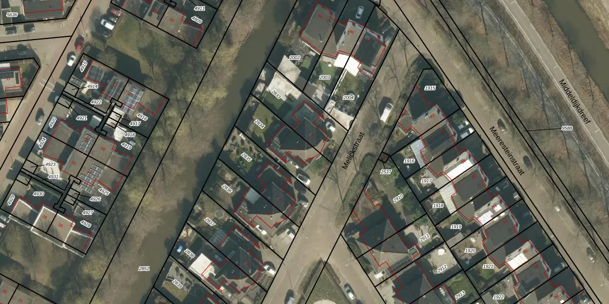 Het perceel waarop Melickstraat 7 staat heeft een oppervlakte van 407 m². Dit is een groot perceel. De perceeloppervlakte wordt geregistreerd door het Kadaster. Gedetailleerde informatie over de maten van dit perceel kunt u vinden in het rapport Kadastrale kaart met maatvoering van Melickstraat 7.