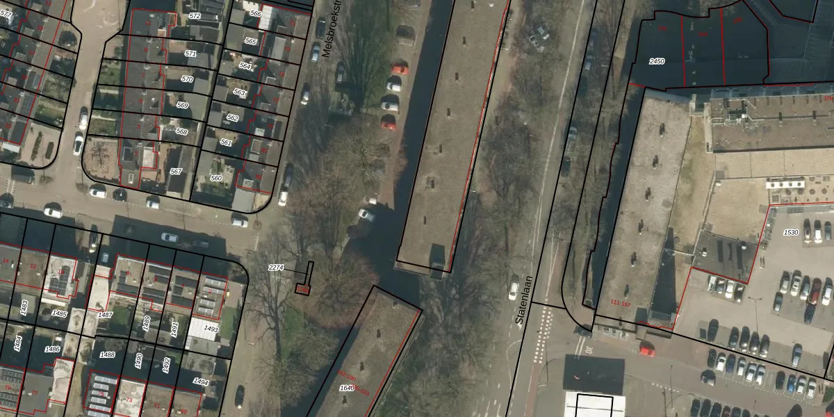 Het perceel waarop Melsbroekstraat 154 staat heeft een oppervlakte van 2585 m². Dit is een zeer groot perceel. De perceeloppervlakte wordt geregistreerd door het Kadaster. Gedetailleerde informatie over de maten van dit perceel kunt u vinden in het rapport Kadastrale kaart met maatvoering van Melsbroekstraat 154.