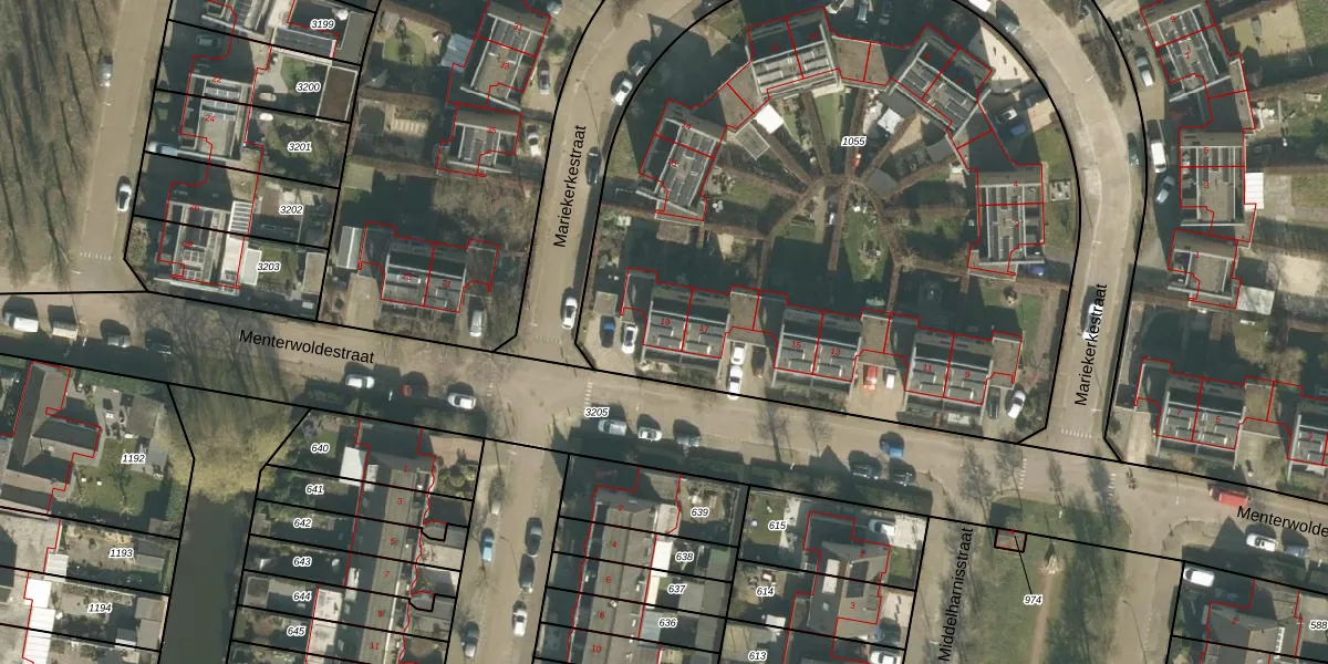 Het perceel waarop Menterwoldestraat 19 staat heeft een oppervlakte van 4175 m². Dit is een zeer groot perceel. De perceeloppervlakte wordt geregistreerd door het Kadaster. Gedetailleerde informatie over de maten van dit perceel kunt u vinden in het rapport Kadastrale kaart met maatvoering van Menterwoldestraat 19.