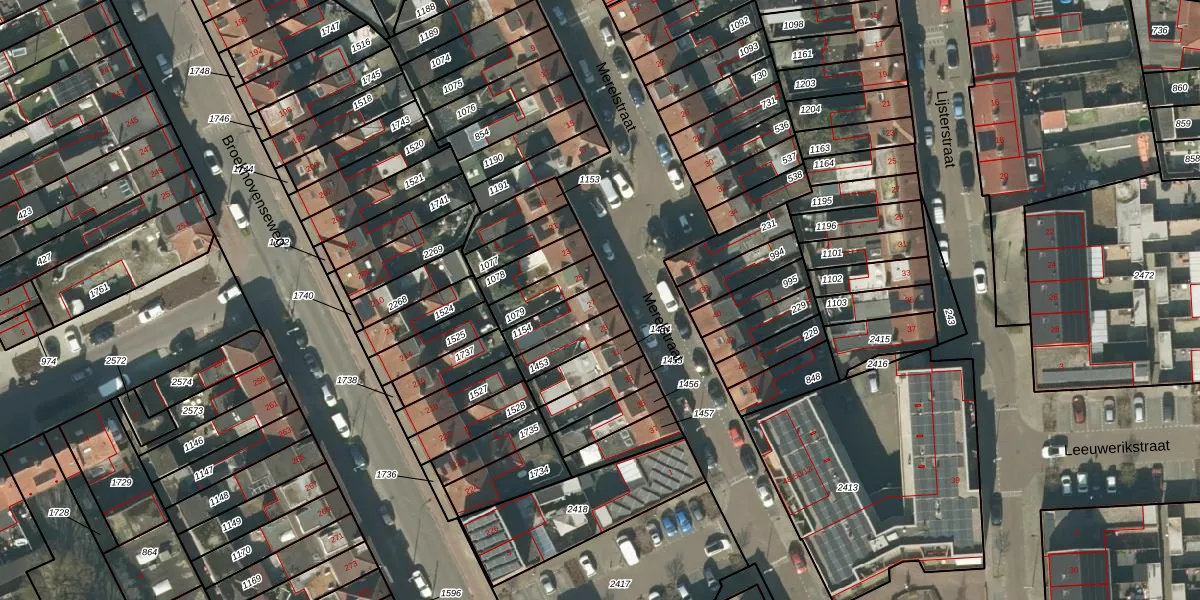 Het perceel waarop Merelstraat 27 staat heeft een oppervlakte van 91 m². Dit is een klein perceel. De perceeloppervlakte wordt geregistreerd door het Kadaster. Gedetailleerde informatie over de maten van dit perceel kunt u vinden in het rapport Kadastrale kaart met maatvoering van Merelstraat 27.